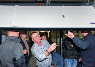 Dit keer kwamen zo’n 30 leden van het Broodfonds De Kempische Mik bij Brabant Deur en Louwers Deurtechnieken langs op de Lage zijde 1 B&C te Eindhoven. De opkomst was goed en de sfeer was gezellig. De koffiemachine gaf bij het eerste kopje meteen de geest, maar gelukkig stond onze medewerker en rots in de branding farida lemouchi meteen klaar om koffie in de pot te zetten. Na een luxe broodje mét koffie en thee hebben Gert en Bart uitgebreid verteld waar ze al die jaren aan gewerkt hebben en hoe ze tot hier zijn gekomen. Ook heeft onze adviseur bedrijfsdeuren Ron Koppelmans een korte uitleg gegeven over het belang van het goed onderhouden en keuren van de bedrijfsdeuren. Daarna hebben we de groep rondgeleid door onze panden.