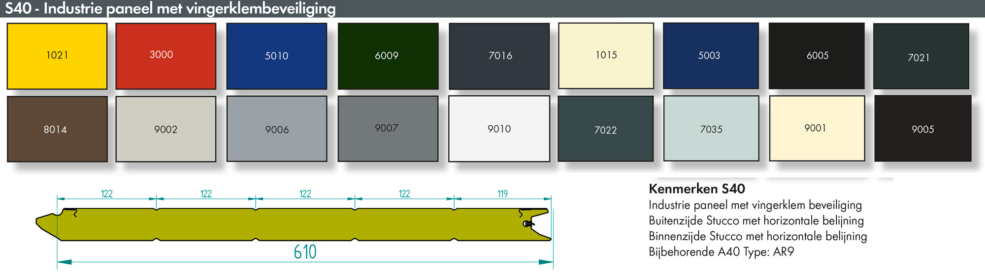De kleur aan de binnenzijde van de panelen is ook de witte RALkleur 9002 met oppervlakte structuur STUCCO. De panelen zijn leverbaar in de afmetingen van 50 cm en 61 cm en in de breedte maken wij de panelen op maat naar uw gewenste afmetingen. Alle panelen zijn standaard voorzien van vingerklembeveiliging en voldoen aan de NEN en CE normeringen.