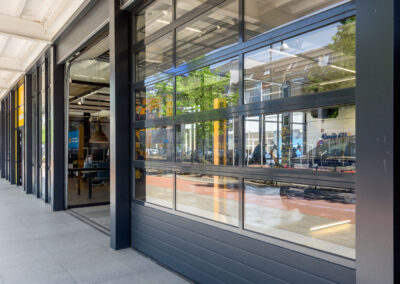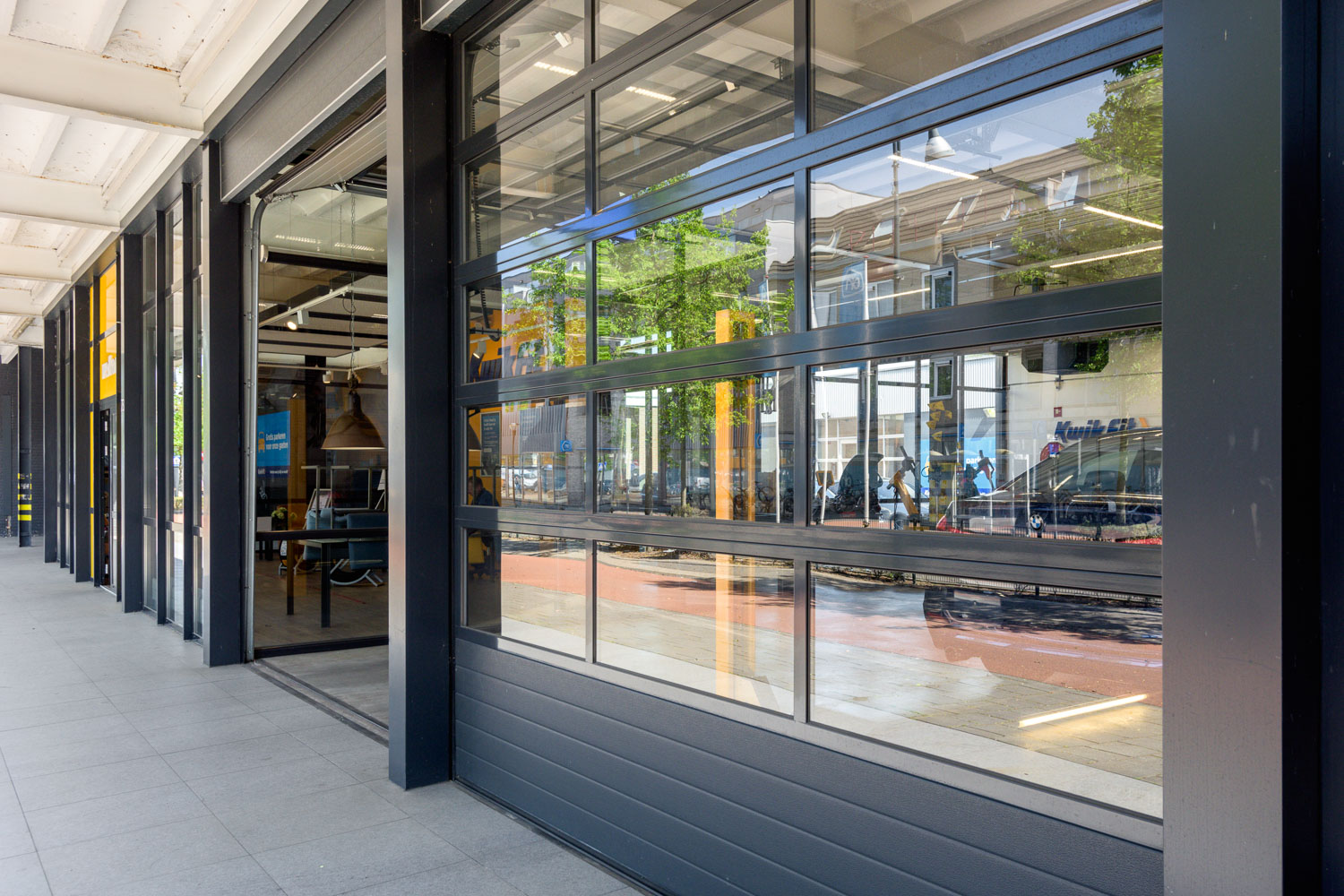 Deze panelen kunnen volledig naar wens worden ingevuld — bijvoorbeeld met glas, gesloten panelen of een combinatie daarvan. Hierdoor geniet u van maximale creatieve vrijheid en kunt u uw bedrijfsdeur volledig afstemmen op de stijl en functionaliteit die u voor uw bedrijf voor ogen heeft. Zo creëert u een bedrijfsdeur die niet alleen technisch voldoet, maar ook naadloos aansluit bij de uitstraling van uw organisatie.