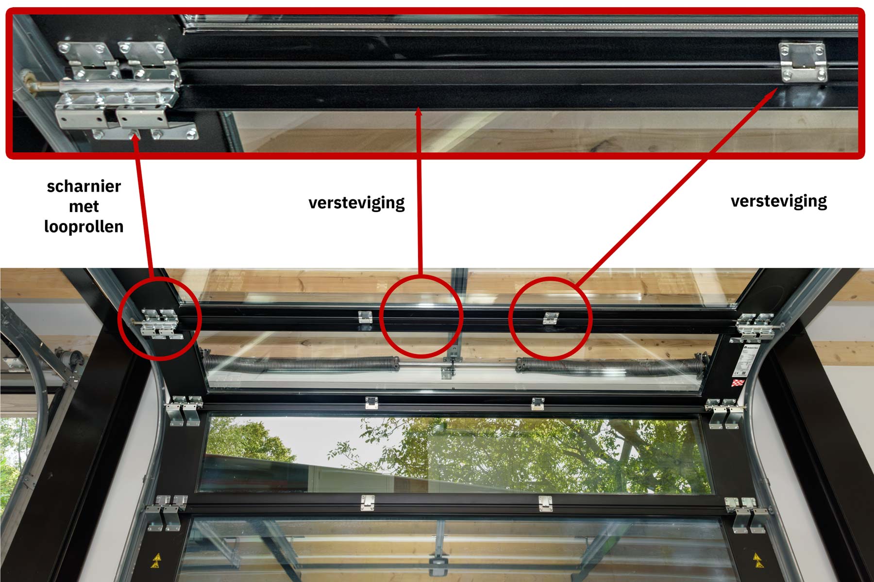 Alle door ons gemonteerde deuren zijn CE-goedgekeurd, worden standaard geleverd met vingerklembeveiliging en zijn veilig in gebruik. Deze vingerklembeveiliging voorkomt dat vingers tussende panelen kunnen komen bij het sluiten van de deur.