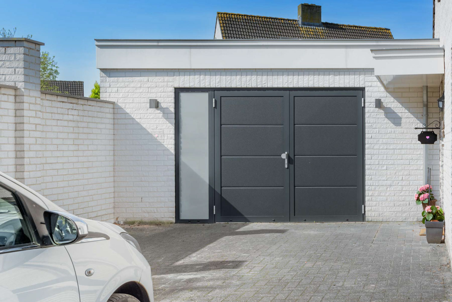 Voor deze thuisstudio in nagelverzorging plaatsten wij dubbele openslaande deuren. Deze dubbele openslaande garagedeur heeft zich door de jaren heen bewezen als een praktische, gebruiksvriendelijke en onderhoudsarme oplossing.