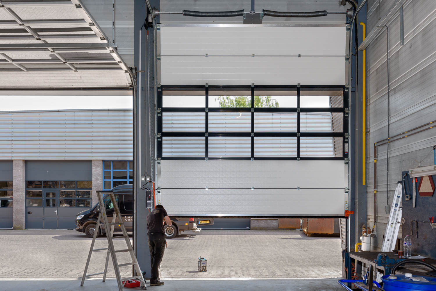 Oude bedrijfsdeuren vervangen voor geïsoleerde elektrische bedrijfsdeuren