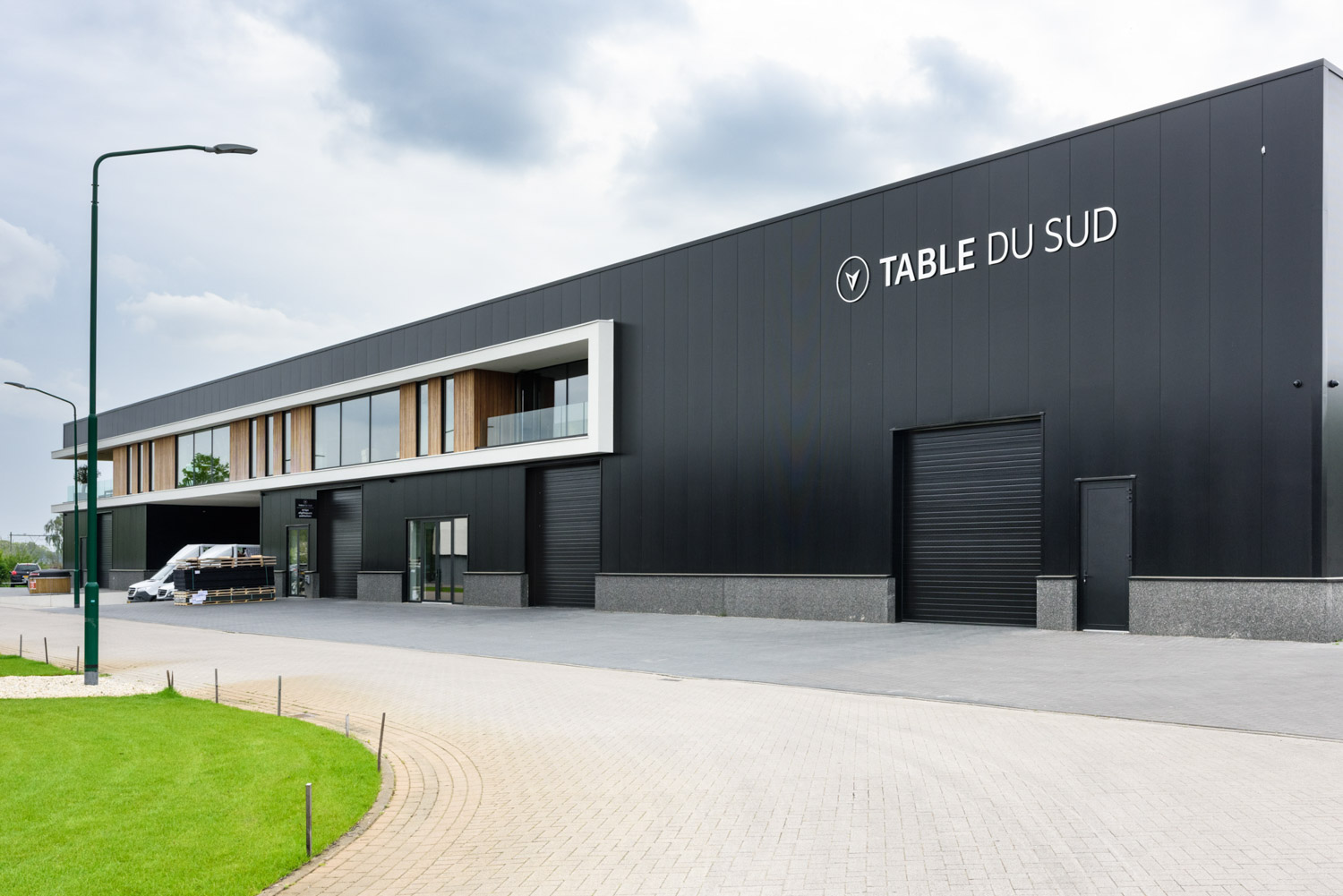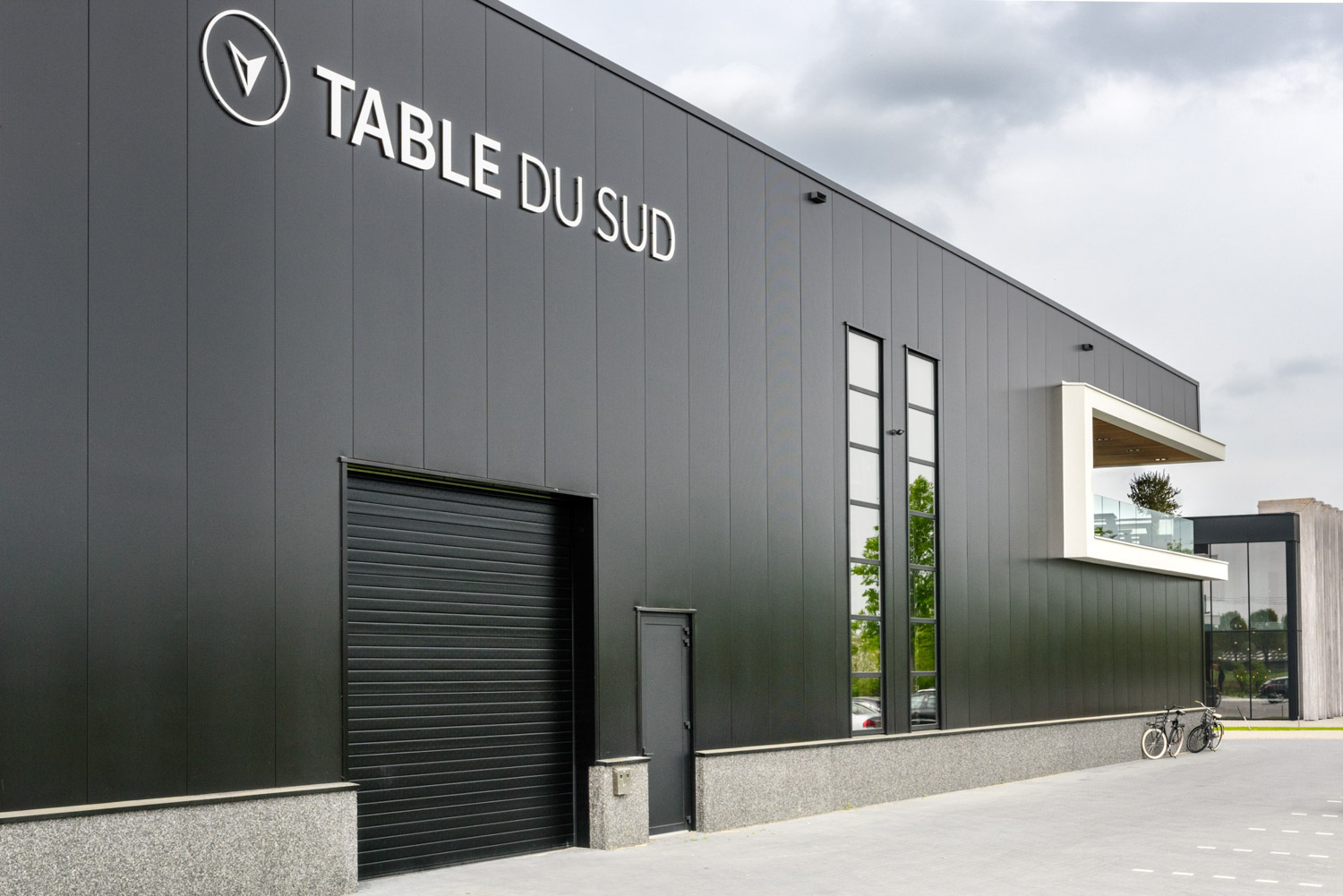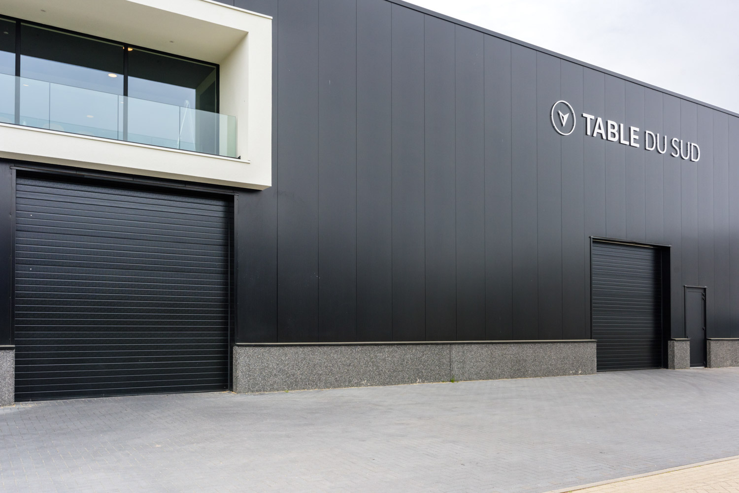 Deze moderne nieuwbouw van Table du Sud heeft meerdere ingangen naar de productiehallen, welke verschillend worden gebruikt. Aan de zijde van het vrachtwagen dock zijn imposant hoge bedrijfssdeuren geplaatst zodat de vrachtwagens op hoogte kunnen laden en lossen. Alle deuren zijn geheel in stijl met het uiterlijk van het gebouw en geeft Table du Sud de uitstraling die het verdient!